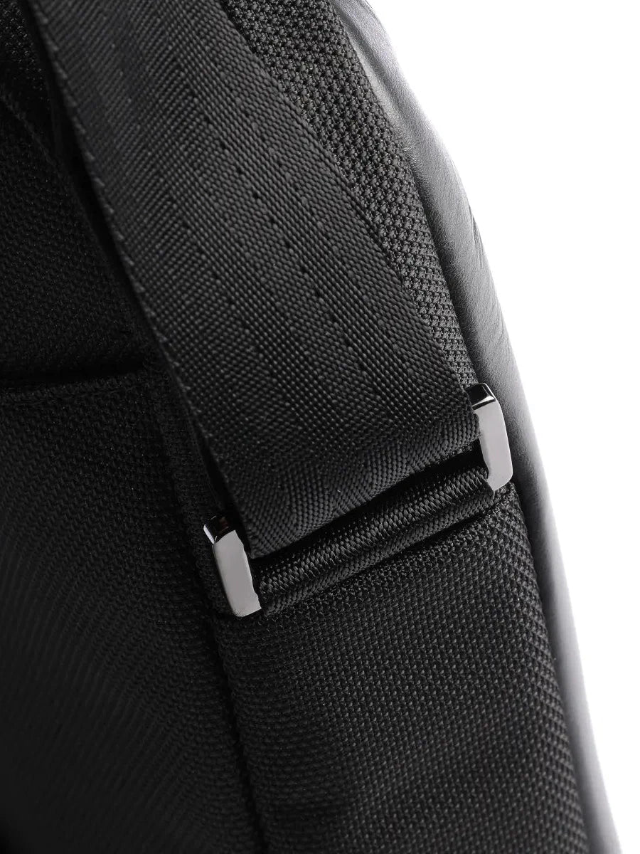 • Bolso bandolera pequeño fabricado en nailon hidrófugo y piel lisa.