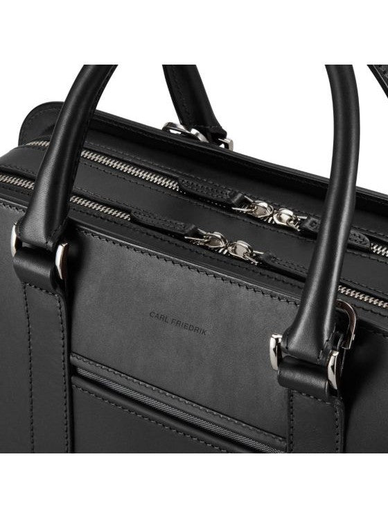 Resourceful briefcase with high capacity yet retaining a sleek appearance. Ideal for those who carry that bit extra. Inside the two zipped compartments is a laptop sleeve (15"), pen slots and multiple organisational pockets.