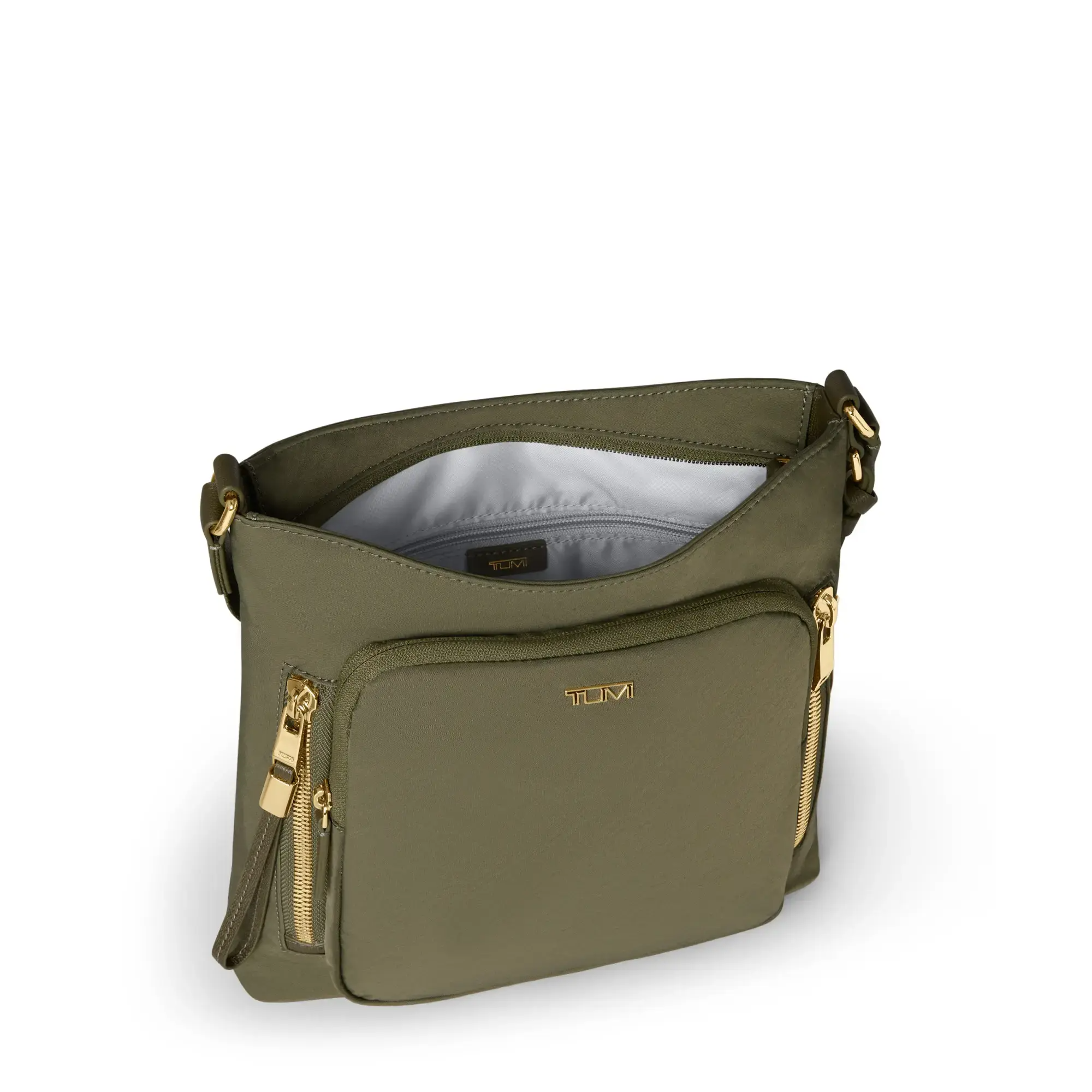 - Adjustable crossbody strap with D-ring compatible with select TUMI+ accessories